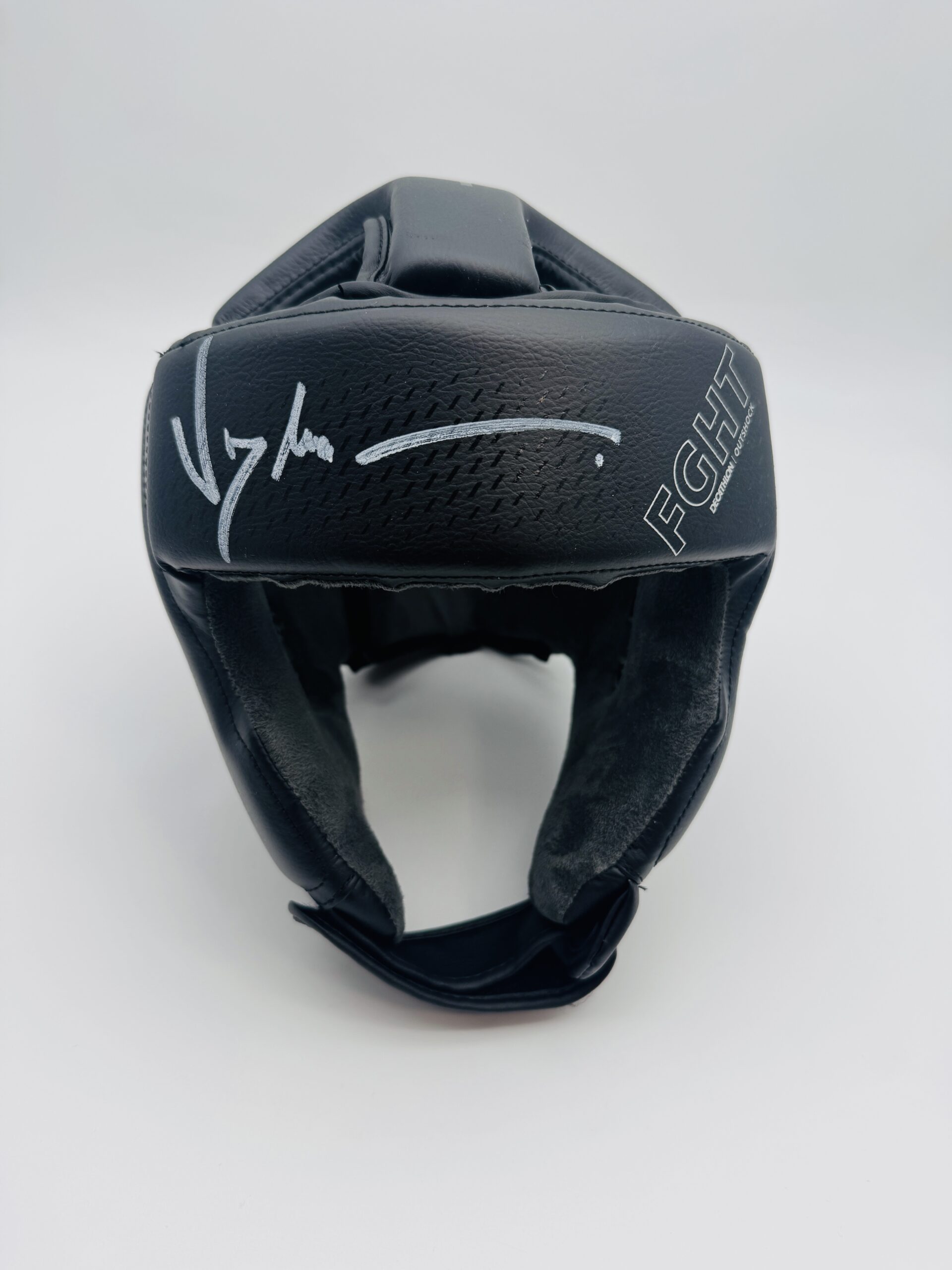 Černá helma vlastnoručně podepsaná Jean-Claude Van Damme. Skvělý sběratelský artefakt.