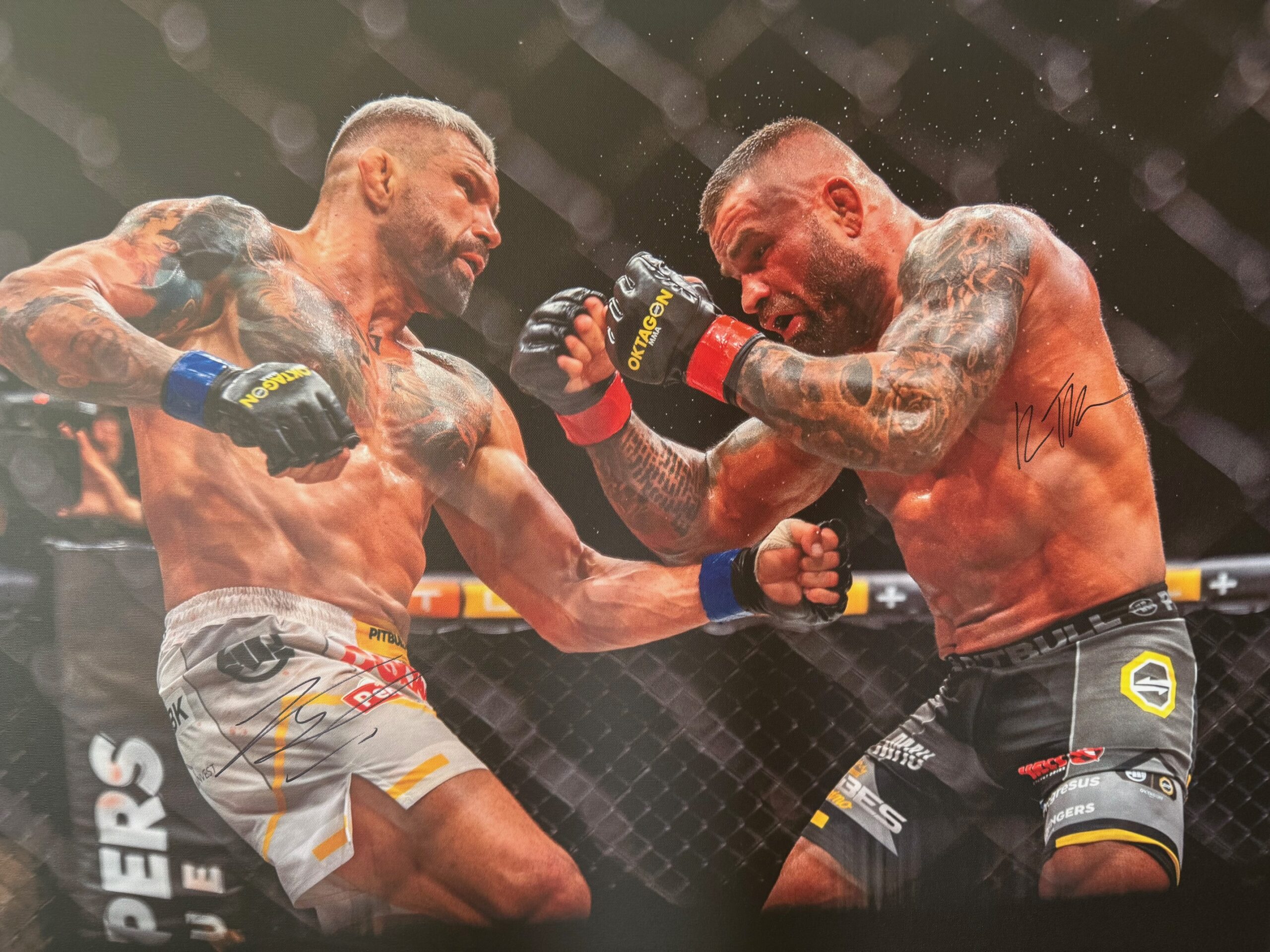 Foto plátno 100 x 70 cm podepsané Attilou Véghem a Karlosem Vémolou s motivem ze zápasu z pražského Edenu 14.6.2025.