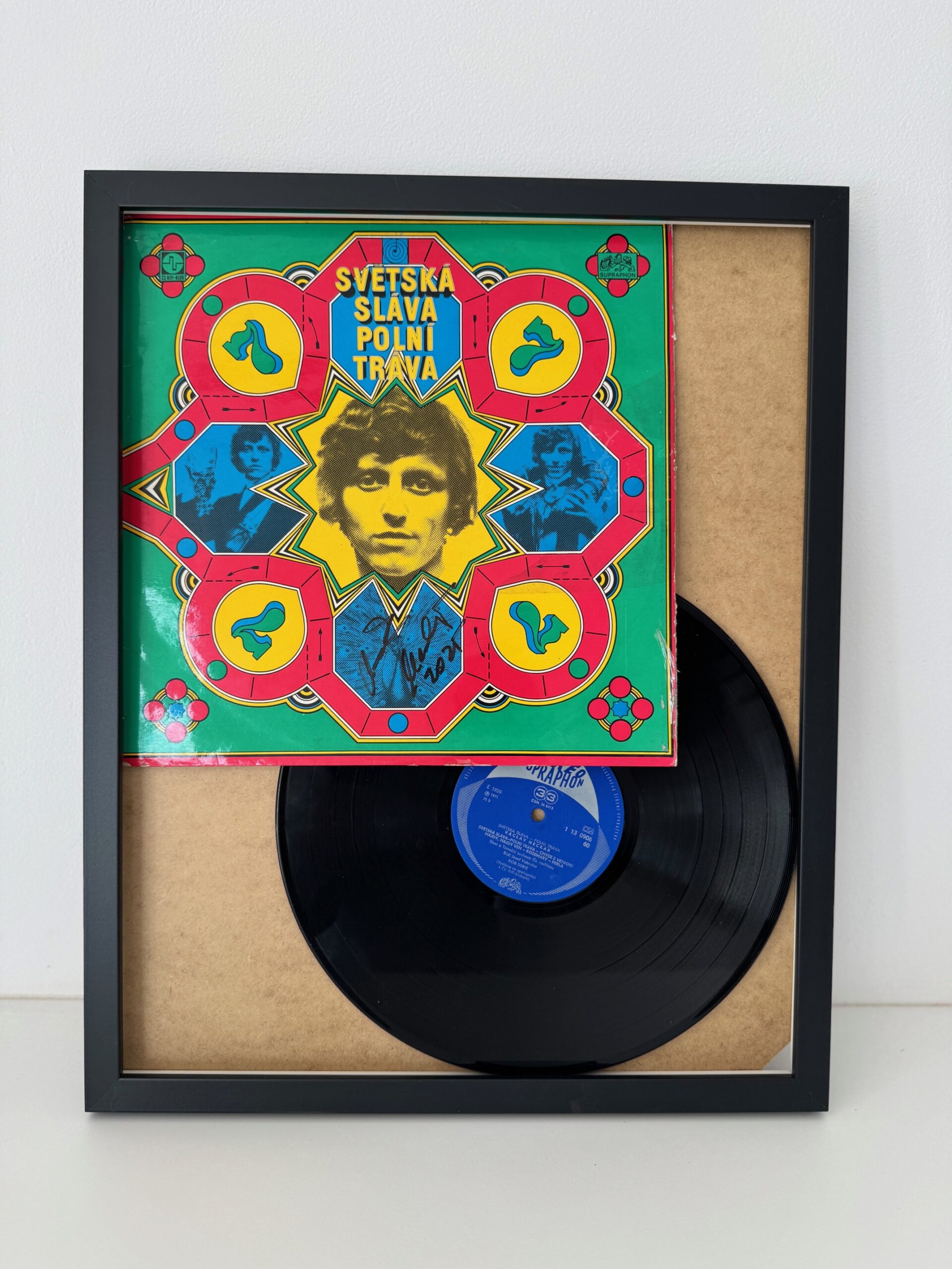 Stará deska Světská sláva, Polní tráva, v rámu – podpis Václav Neckář
