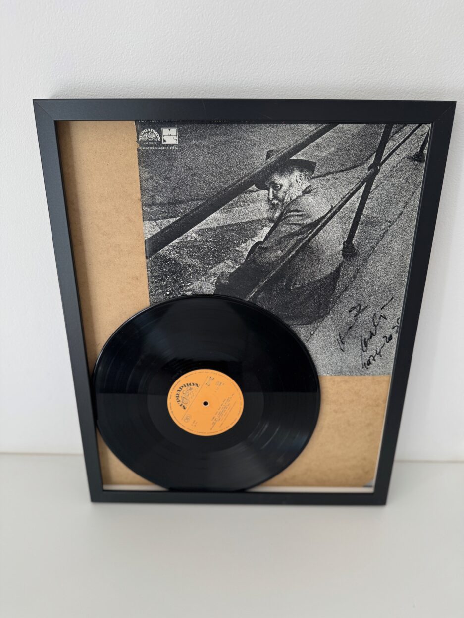 Stará deska Tomu, kdo nás má rád, v rámu – podpis Václav Neckář