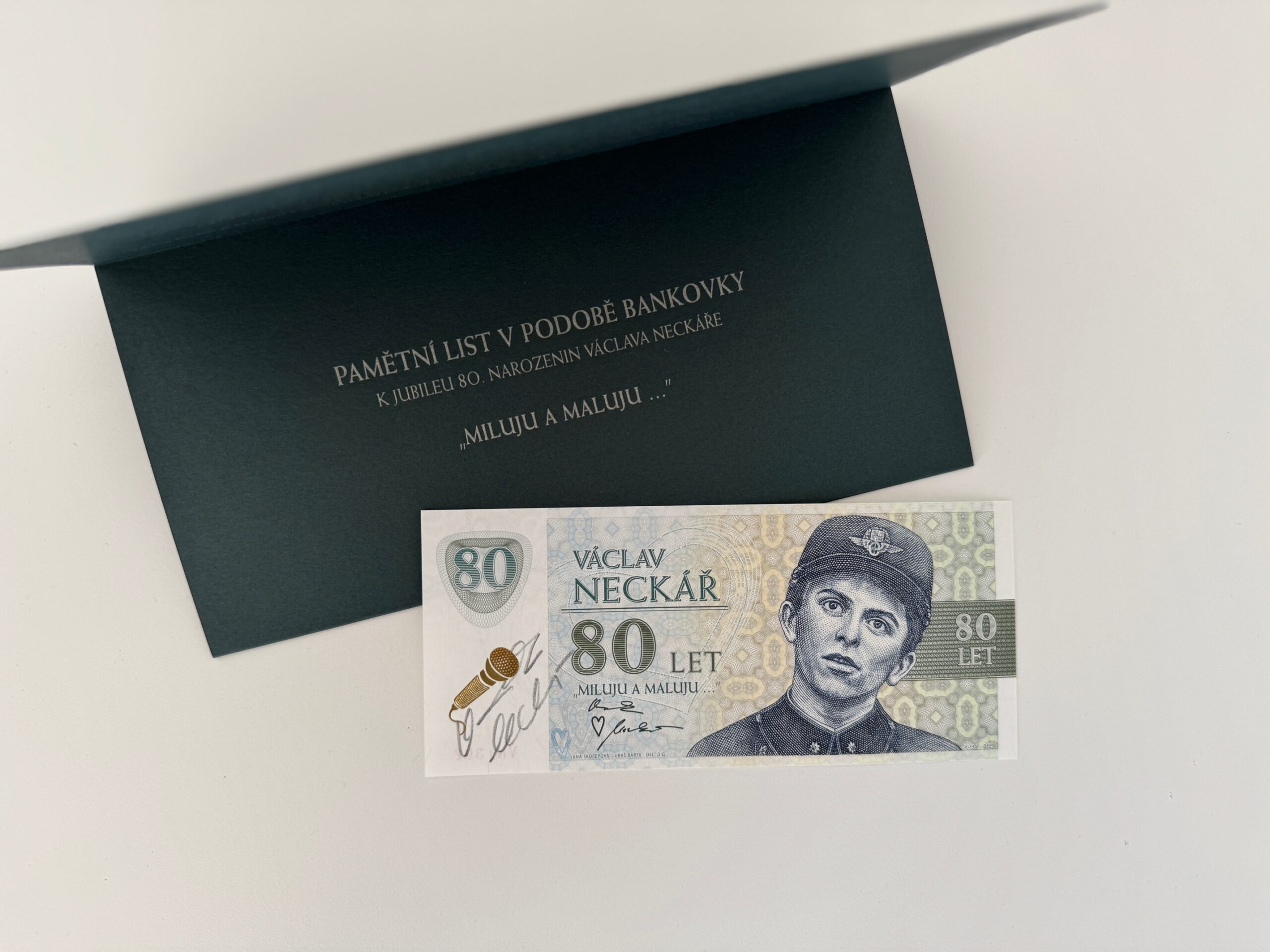 Pamětní list v podobě bankovky Václava Neckáře, VLASTNORUČNÍ PODPIS